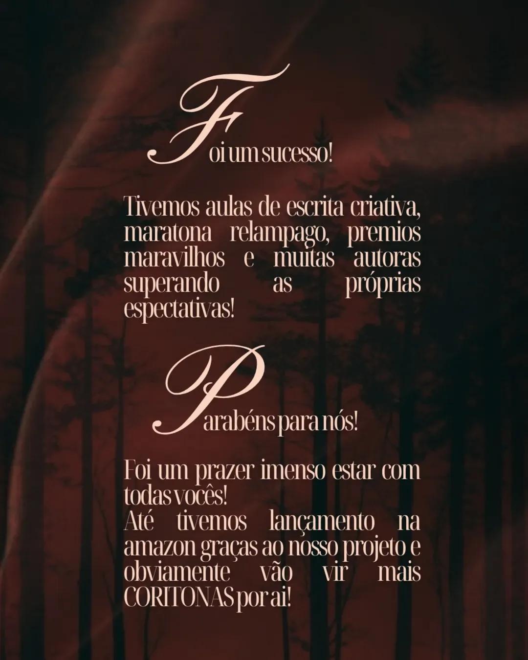 @corinievreA #coritona de verão acabou, mas já estamos organizando tudo aqui para uma nova muito em breve! Enquanto isso, quero agradecer cada uma que participou e todos que apoiaram esse trabalho. Foi um mês muito legal! Fico feliz que esse pequeno evento ajudou bastante autora! Aproveitem os livrinhos e aguardem pq logo estaremos de volta!