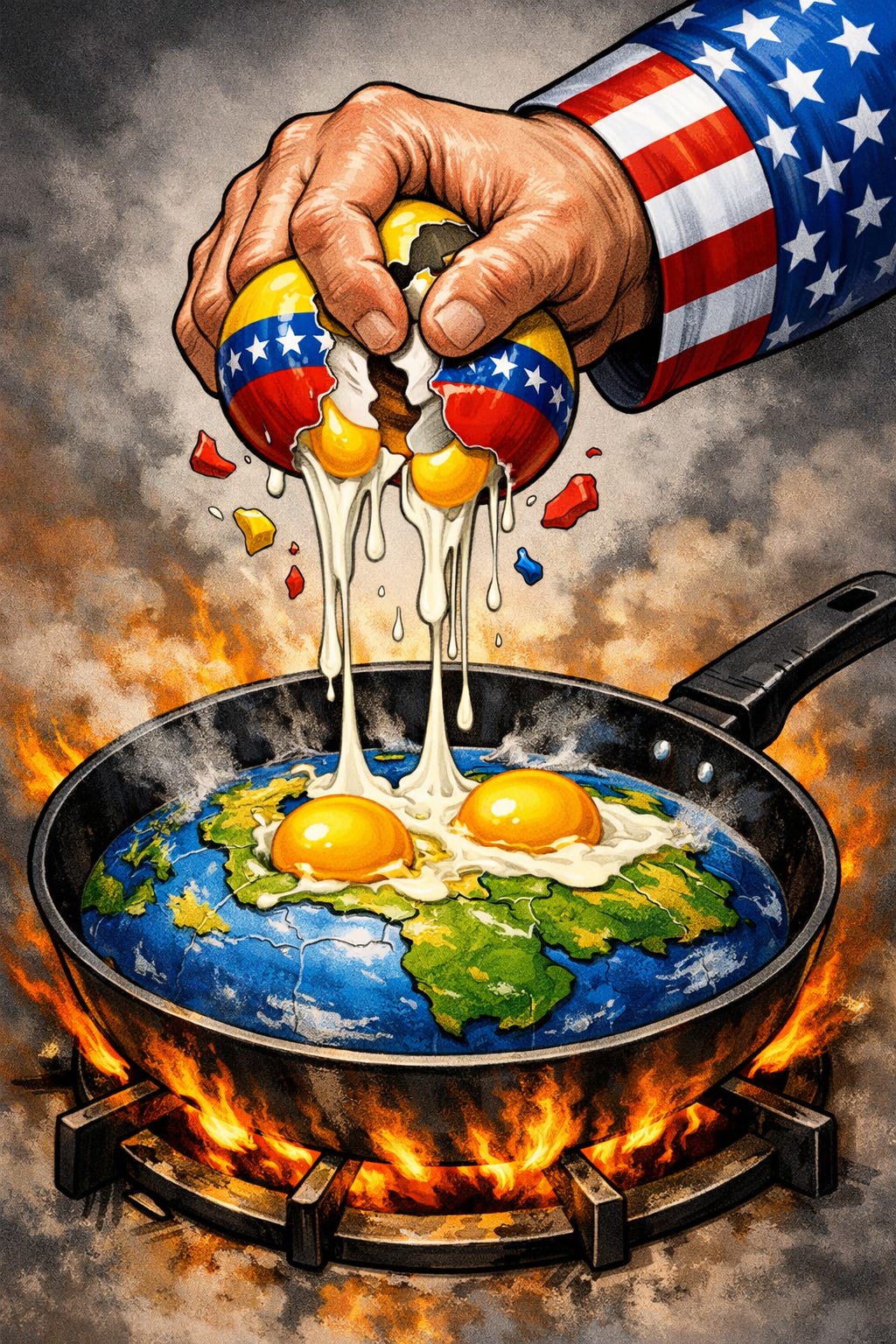 Os amigos estavam conversando sobre a invasão dos EUA na Venezuela, a captura do Nicolás Maduro. Um deles, mais à direita — quando digo mais à direita, se fosse um relógio a hora seria 3:15 —, comemorando, dizendo que demorou para ser feito, que o Trump é um herói que foi libertar os venezuelanos e, estando perto, talvez desse uma esticada e já levasse uns políticos brasileiros pra aproveitar a viagem. O outro, mais inclinado à esquerda — quando eu digo inclinado, é deitado numa cama onde os pés estão à direita da porta e a cabeceira é à esquerda, a cabeça está pra fora de tão deitado à esquerda que está —, dizia que aquilo era um crime internacional, que o Maduro, apesar dos defeitos, ainda era um presidente eleito, que outros presidentes não tinham o direito de fazer aquilo, que o Trump não estava nem aí para o povo, só queria saber do petróleo. Que primeiro ele vê o que quer, depois pensa numa desculpa para pegar. Um ladrão roubando de um povo humilde.