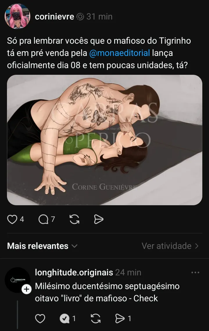 Só pra lembrar vocês que o mafioso do Tigrinho tá em pré venda pela @monaeditorial lança oficialmente dia 08 e tem poucas unidades, tá?
