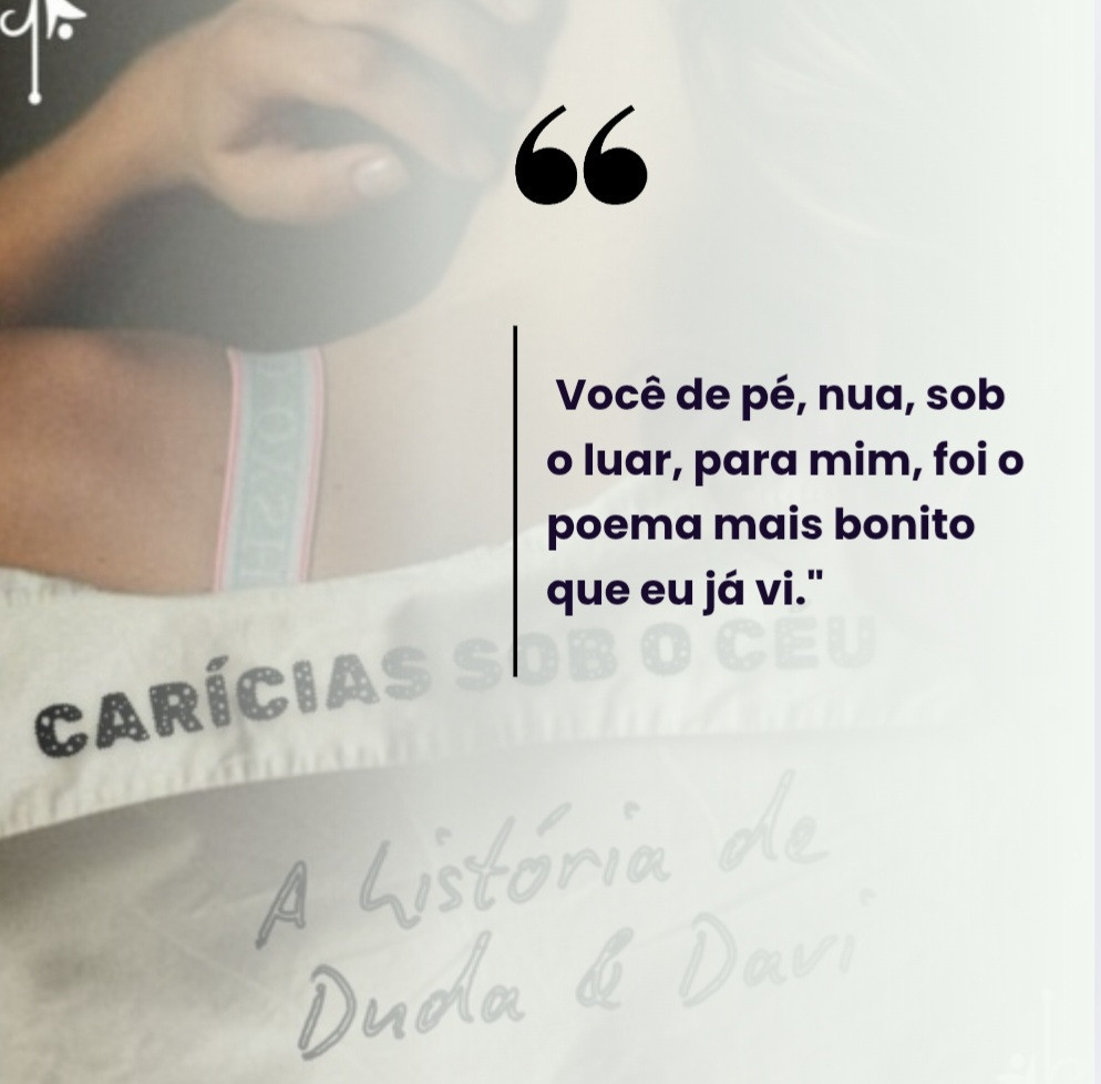 Em "Carícias sob o céu: a história de Duda & Davi", os dois protagonistas dividem a paixão pela poesia e ensaiam seus próprios poemas. Aqui está um poema escrito por Maria Eduarda para Davi, pensando na noite em que se conheceram.