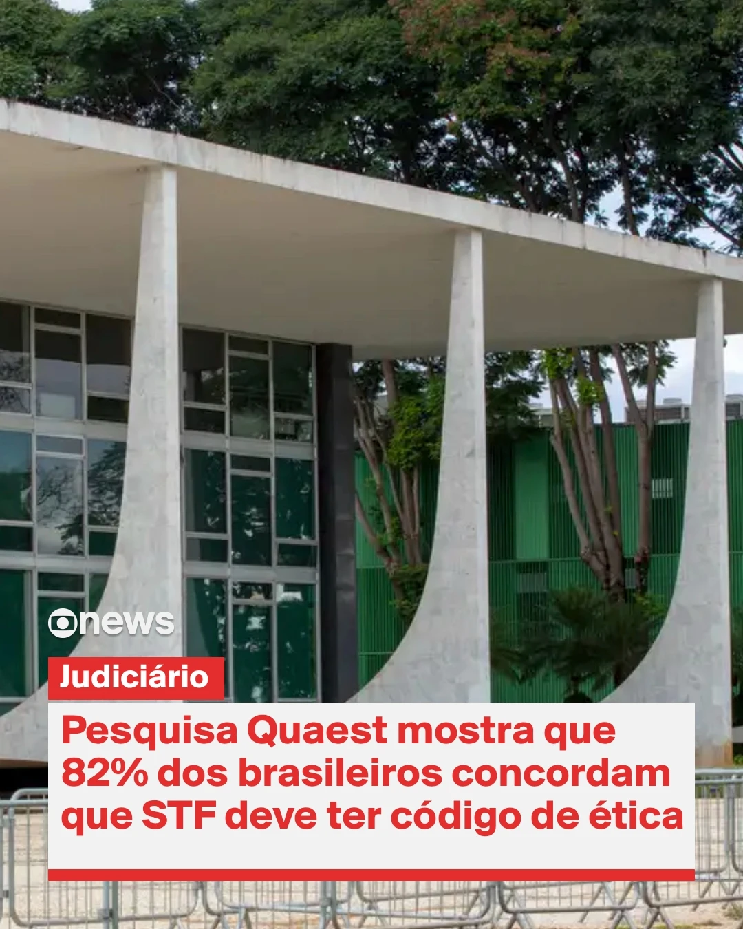 Pesquisa feita pela Quaest perguntou se os brasileiros concordam que o STF deve ter um código de ética e conduta para os ministros. Segundo o levantamento, 82% dizem concordar que os integrantes da Corte precisam dessas regras.