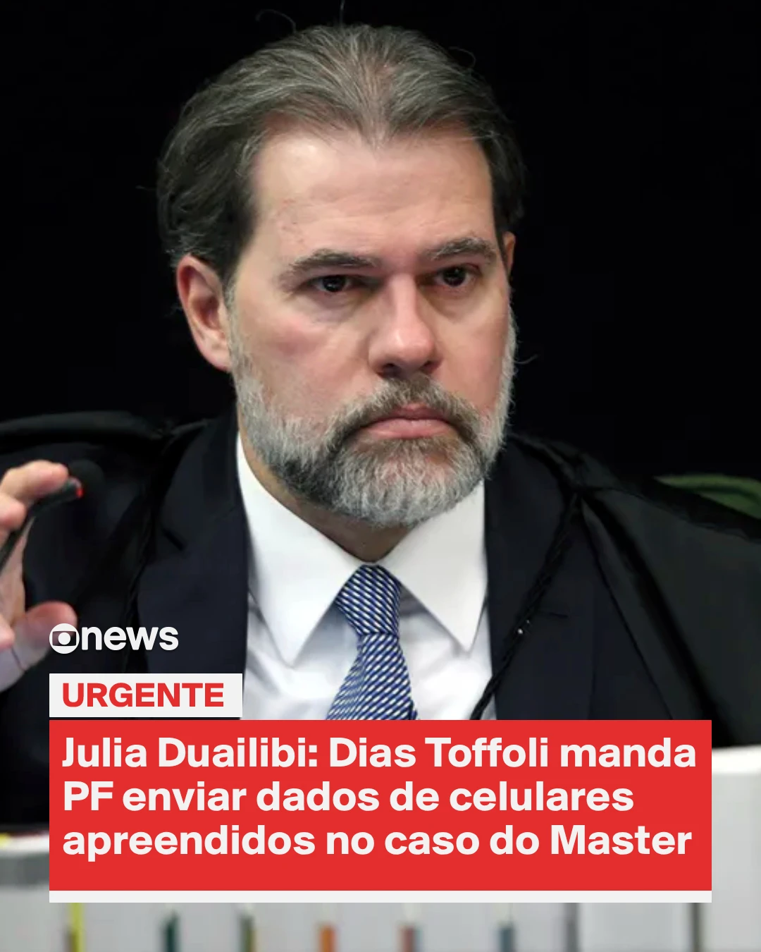 O ministro Dias Toffoli, relator do caso do Banco Master no STF, determinou nesta quinta (12) que a PF envie os dados de todos os celulares apreendidos e já periciados na investigação. Segundo as investigações, o nome de Toffoli aparece em mensagens encontradas no aparelho.